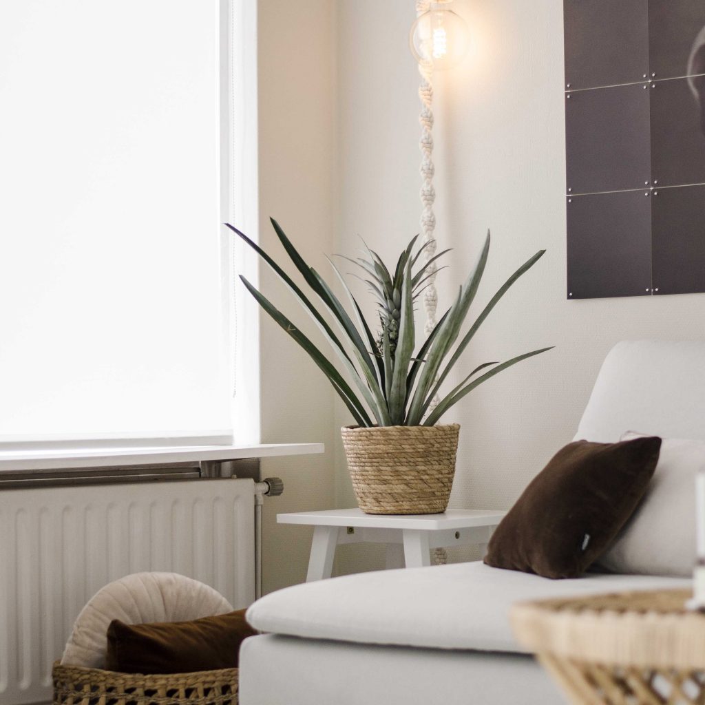 Update: Ik heb er een nieuwe plant bijgekregen! Inmiddels hebben veel van mijn planten al een nieuw huisje gekregen, maar Kimberly van JNGL vroeg of ze mij een plant op mocht sturen. Eigenlijk heb ik momenteel weinig planten in huis, ondanks de goede luchtzuiverende eigenschappen. Maar voor deze beauty wilde ik een uitzondering maken: de Bromelia Ananasplant! Dit is een grote variant van 55cm hoog en door de hoge bladeren is hij ook net iets unieker en speelser dan de kleinere variant. De kleine variant is overigens ook heel schattig. De ananas is niet eetbaar maar heeft wel een functie: deze geeft niet overdag maar 's nachts zuurstof af. Hij kan zelfs bijdragen aan het verminderen van snurken, de ideale plant voor op de slaapkamer dus!
